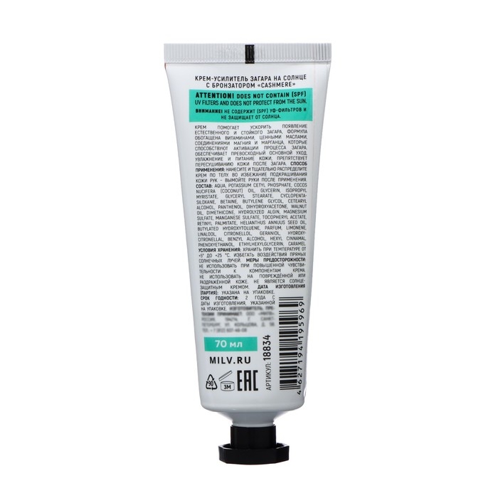 Крем-усилитель загара на солнце с бронзатором MILV розовый перец, ваниль, пачули, 70 мл