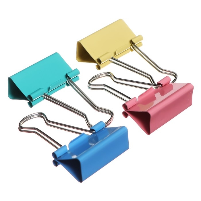 Набор зажимов для бумаг пастель 32мм, 12 штук, 4 цвета, в картонной коробке
