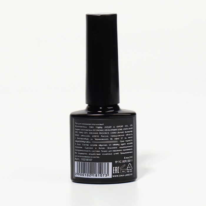 Топ для ногтей, каучуковый, 8 мл, LED/UV, цвет прозрачный