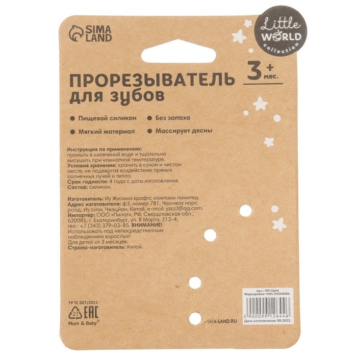 Прорезыватель снимает неприятные ощущения у малыша в период появления первых зубов. Также изделие подготовит ребёнка к процессу жевания, поспособствует формированию правильного прикуса и развитию мелкой моторики рук.