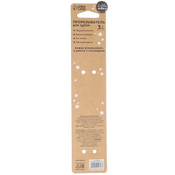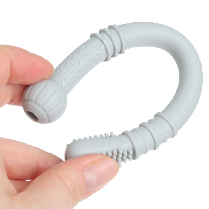Прорезыватель снимает неприятные ощущения у малыша в период появления первых зубов. Также изделие подготовит ребёнка к процессу жевания, поспособствует формированию правильного прикуса и развитию мелкой моторики рук.