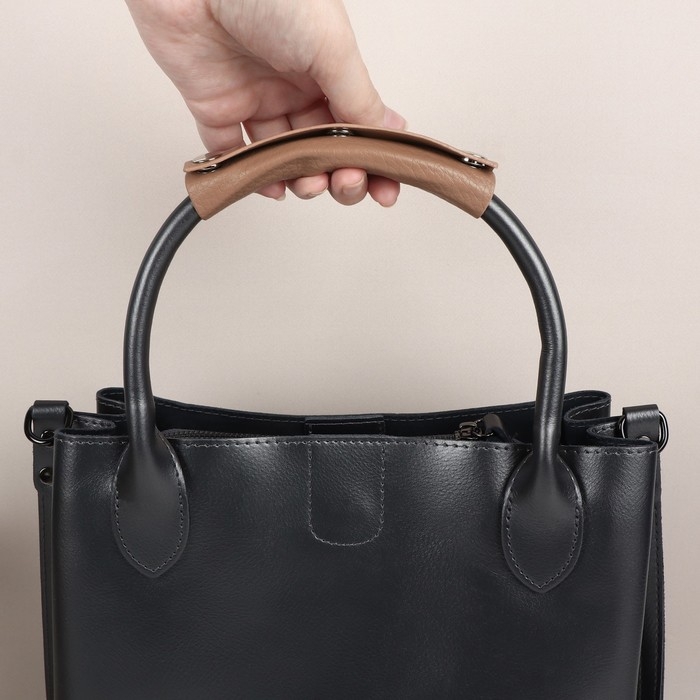 Ручка для сумки из натуральной кожи, регулируемая, с карабинами, 60 ± 2 см × 1,2 см, цвет чёрный/серебряный