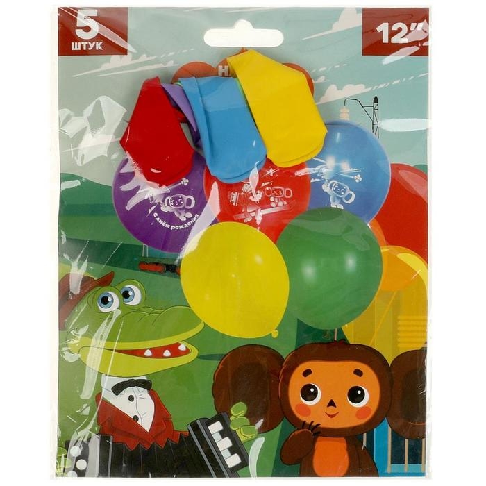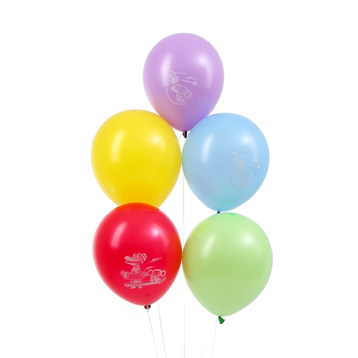Шар латексный 12" «Чебурашка» монохромный принт, набор 5 шт.