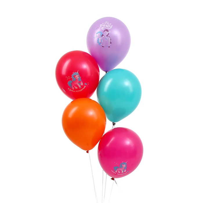 Шар латексный 12" «Мой маленький Пони» цветной принт, набор 5 шт.