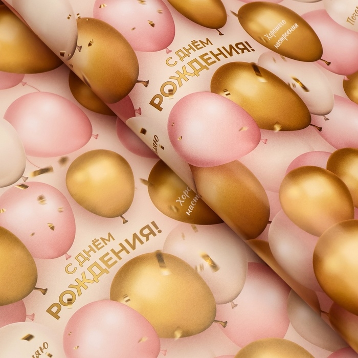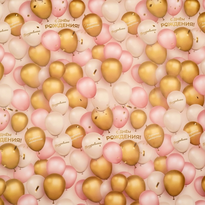 Бумага упаковочная, глянцевая "С днем рождения", шарики, 70 х 100 см, 1 лист