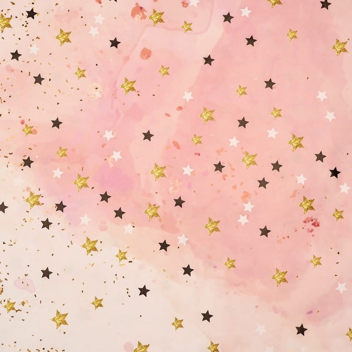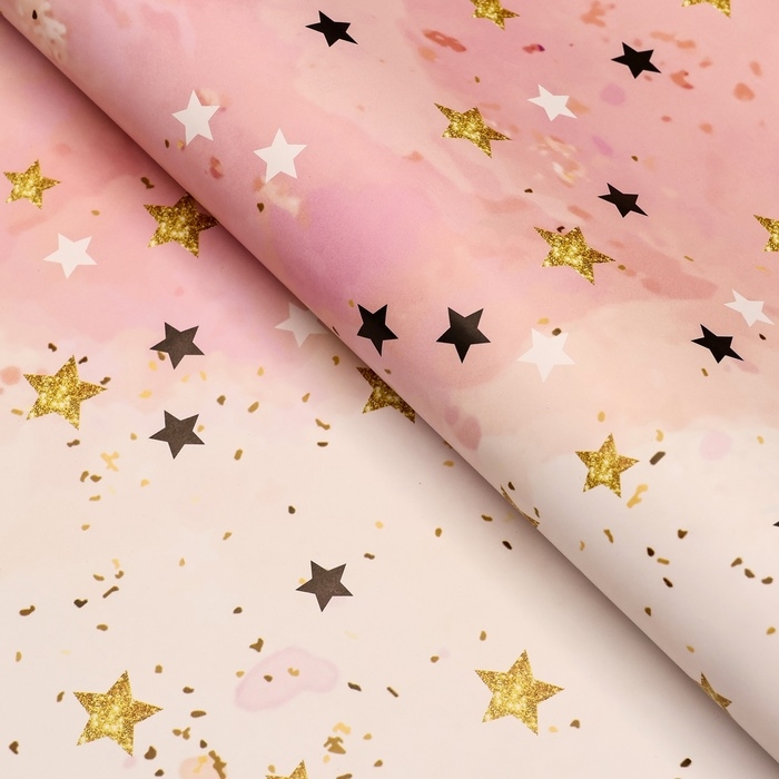 Бумага упаковочная, глянцевая "Звезды", розовый, 70 х 100 см, 1 лист