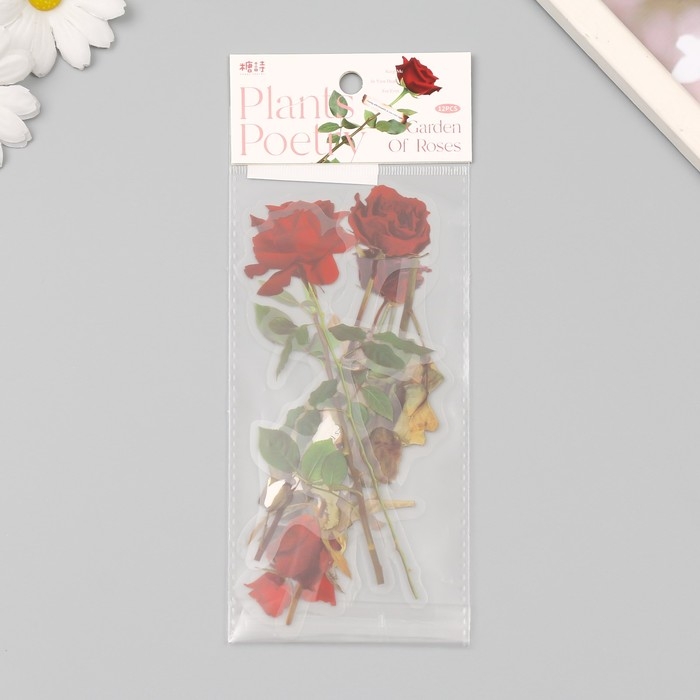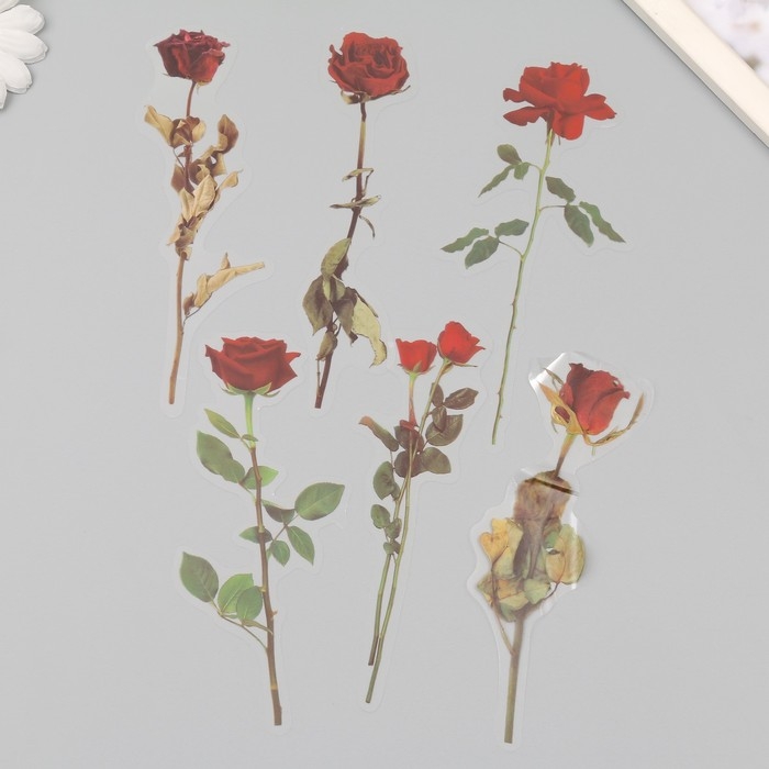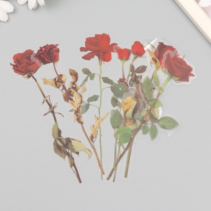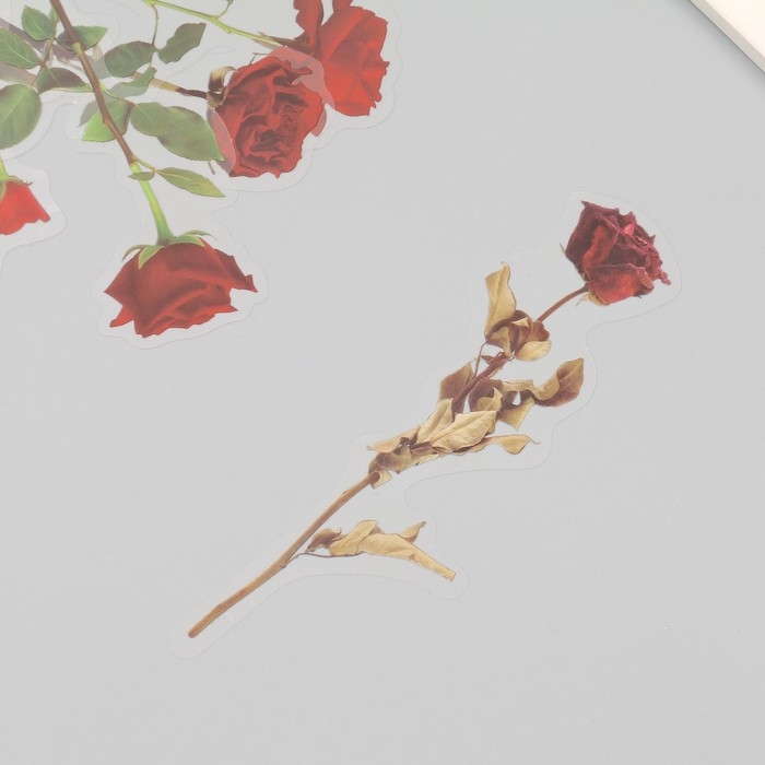 Наклейки пластик "Цветы и цитаты. Красные розы" набор 12 шт 8,5х21,5х0,2 см