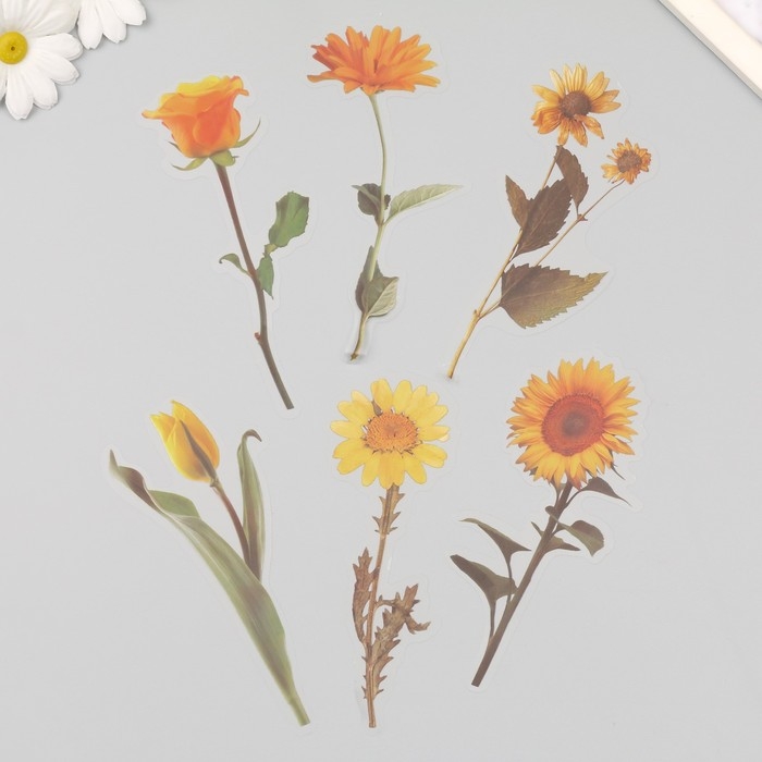 Наклейки пластик "Цветы и цитаты. Желтые" набор 12 шт 8,5х21,5х0,2 см