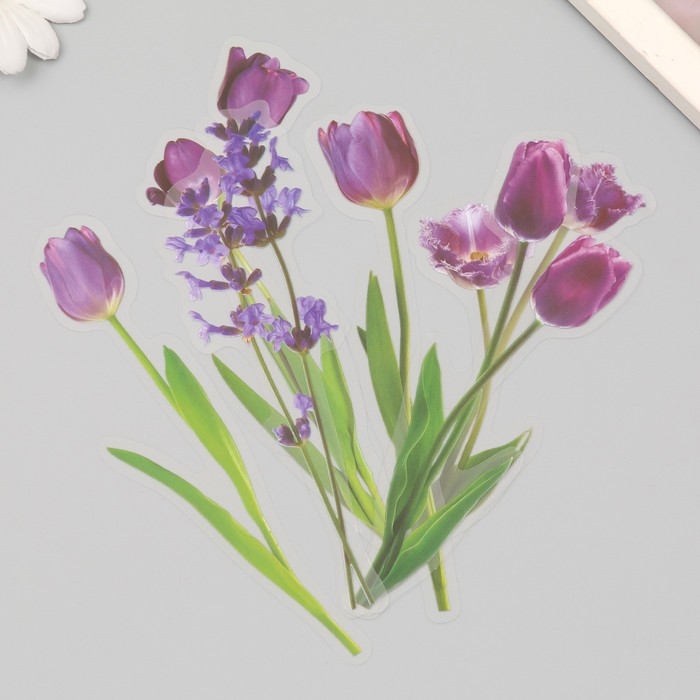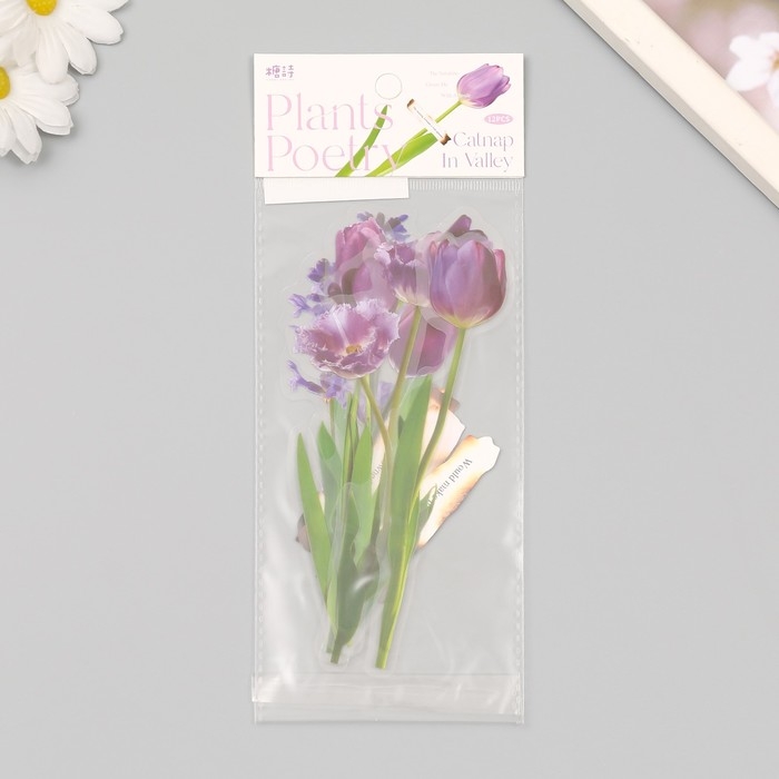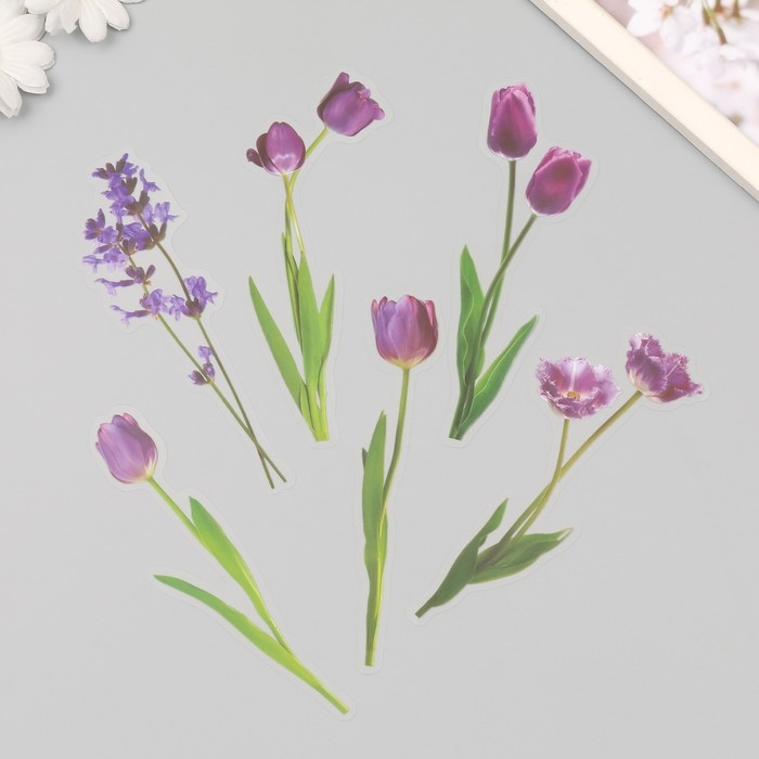 Наклейки пластик "Цветы и цитаты. Сиреневые" набор 12 шт 8,5х21,5х0,2 см