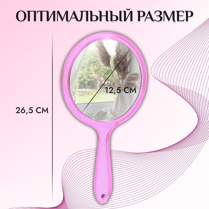 Зеркало с ручкой, двустороннее, с увеличением, d зеркальной поверхности 12,5 см, цвет розовый