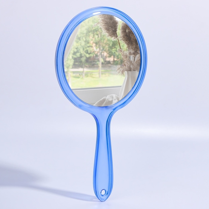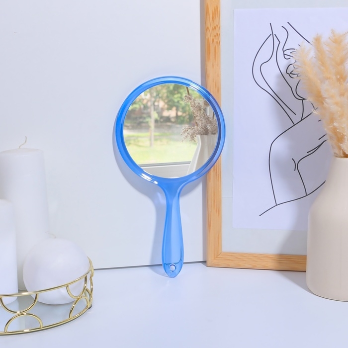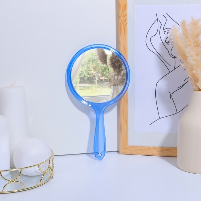 Зеркало с ручкой, двустороннее, с увеличением, d зеркальной поверхности 12,5 см, цвет синий