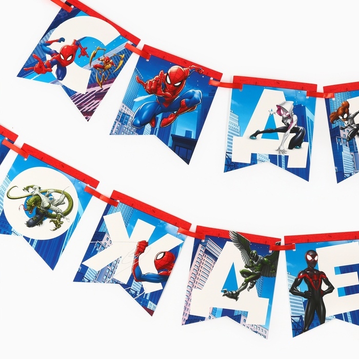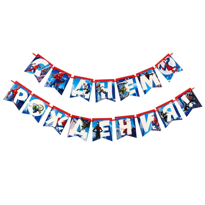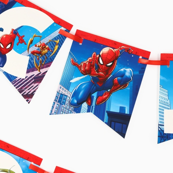 Гирлянда на ленте "С Днем Рождения", Человек-паук дл. 176 см
