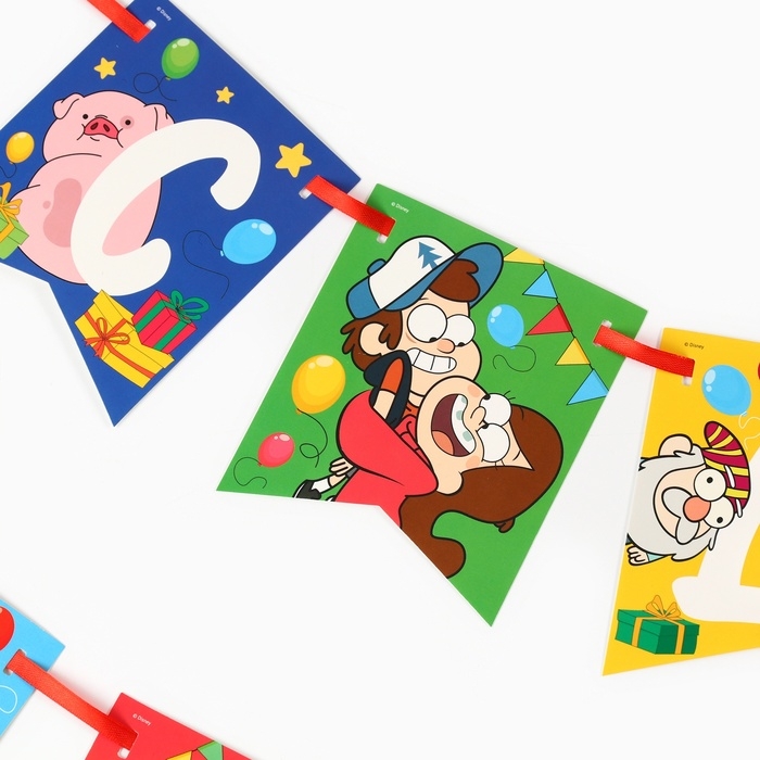 Гирлянда на ленте "С Днем Рождения", Гравити Фолз дл. 176 см