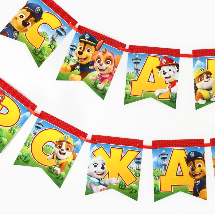 Гирлянда на ленте "С Днем Рождения", Щенячий патруль дл. 176 см