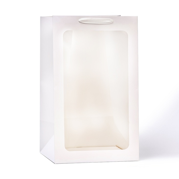 Пакет подарочный с окном, белый, 50 х 30 х 25 см