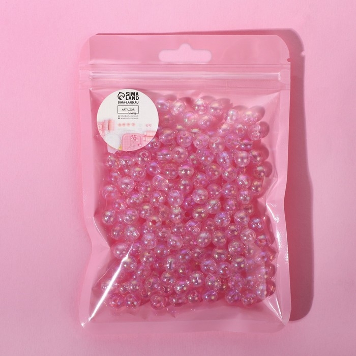 Бусины пришивные, с голографией, d = 8 мм, 50 г, цвет розовый
