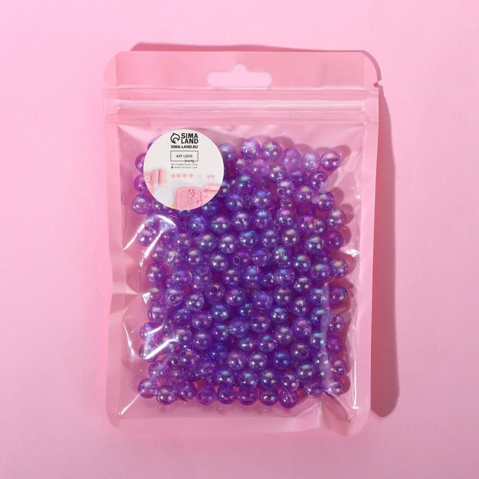 Бусины пришивные, с голографией, d = 8 мм, 50 г, цвет сиреневый