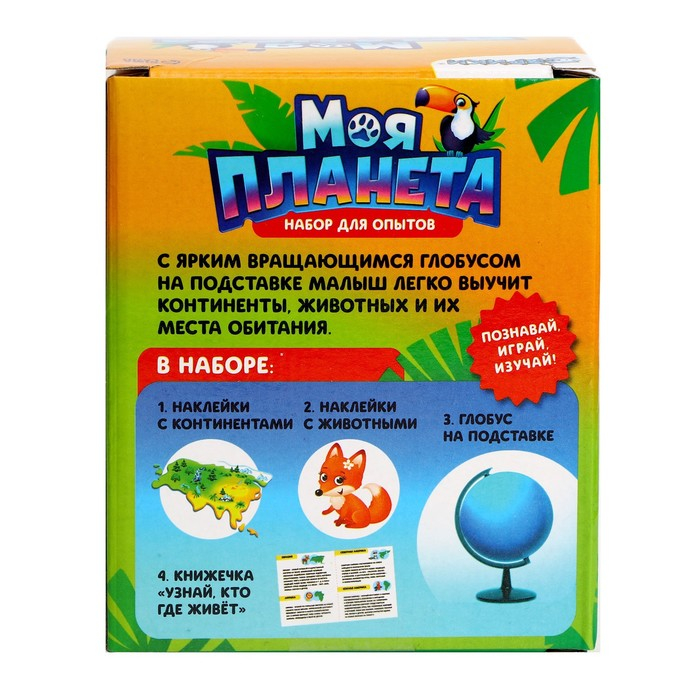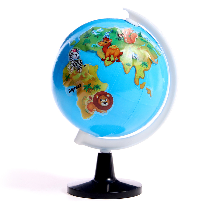 С ярким вращающимся глобусом на подставке малыш легко выучит континенты, животных и места их обитания.