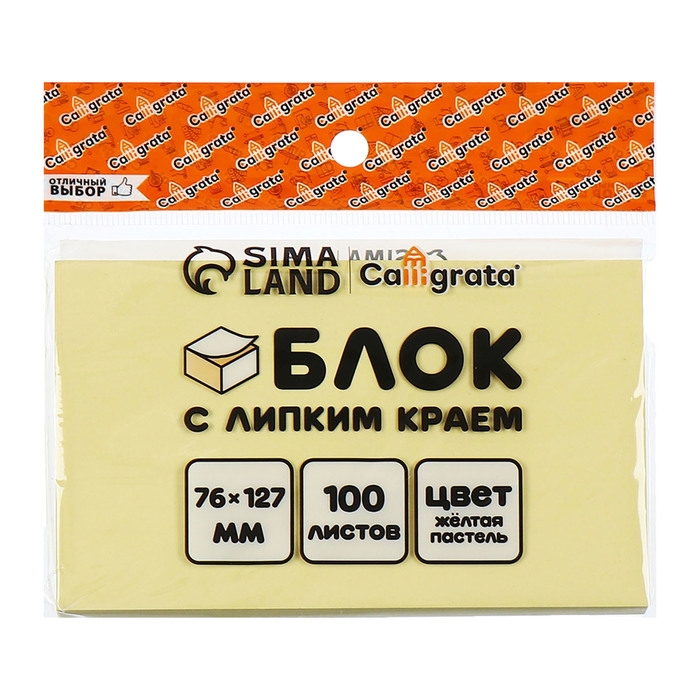 Блок с липким краем 76 х 127 мм, 100 листов, пастель, желтый