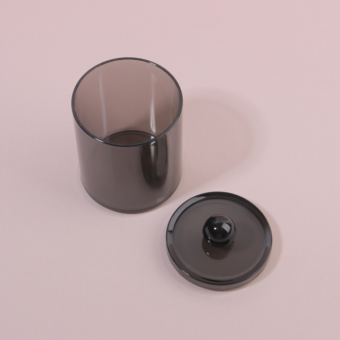 Органайзер для для ватных палочек, с крышкой, d = 7 × 10,5 см, в коробке, цвет полупрозрачный/чёрный