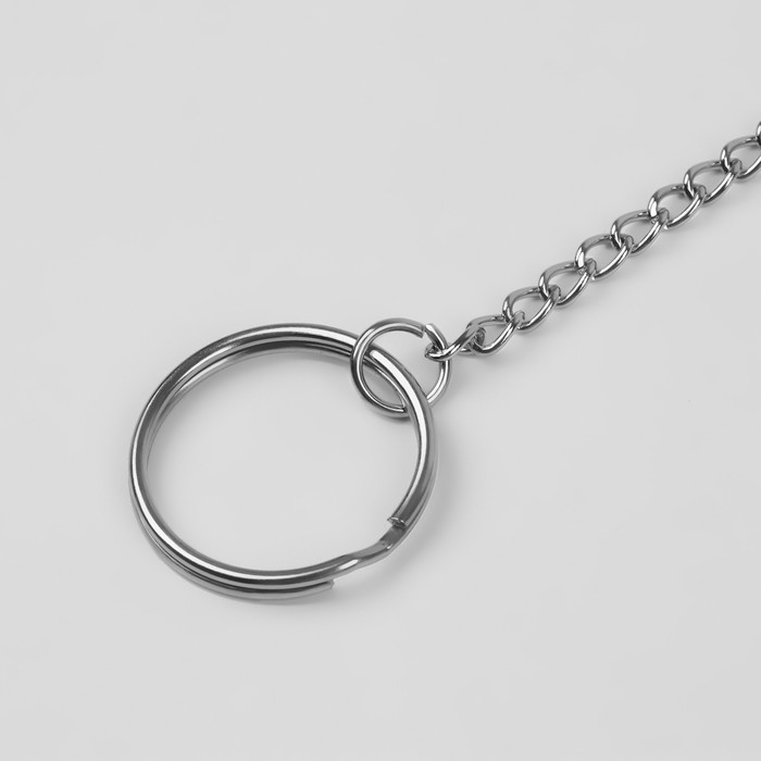 Кольцо для брелока на цепочке, с карабином, d = 25 мм, 35,5 см, 12 шт, цвет серебряный