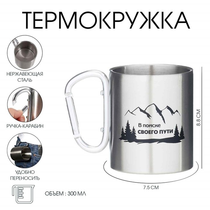 Термокружка, 300 мл, Карабин "В поиске своего пути"