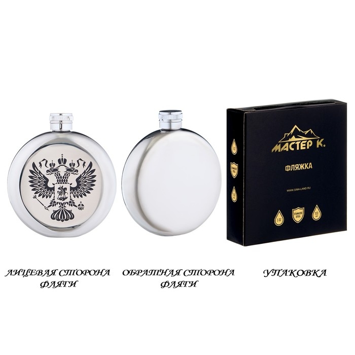 Фляжка для алкоголя и воды "Герб России", нержавеющая сталь, круглая, подарочная, 150 мл