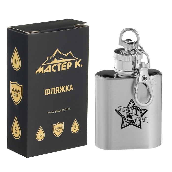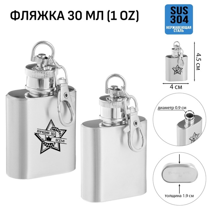 Фляжка-брелок для алкоголя "Лучший во всем", нержавеющая сталь, 30 мл, 1 oz