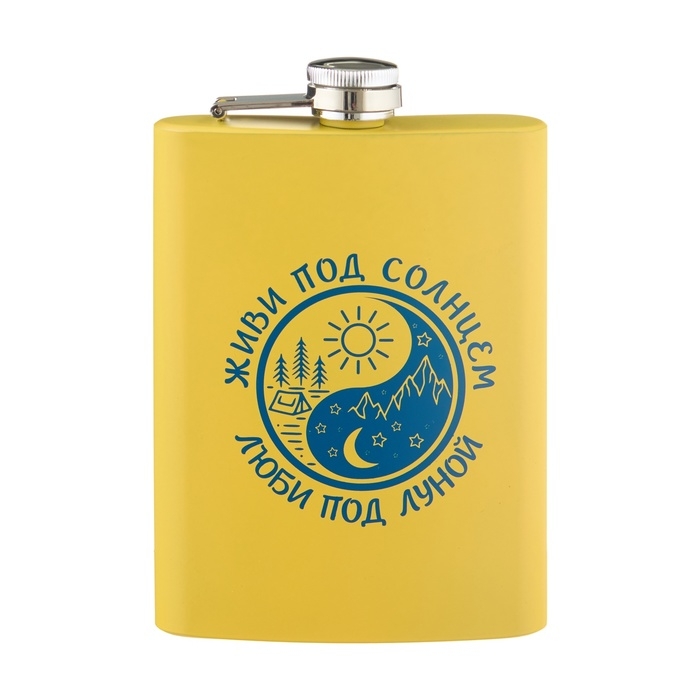 Фляжка для алкоголя "Живи под солнцем", нержавеющая сталь, подарочная, 240 мл, 8 oz