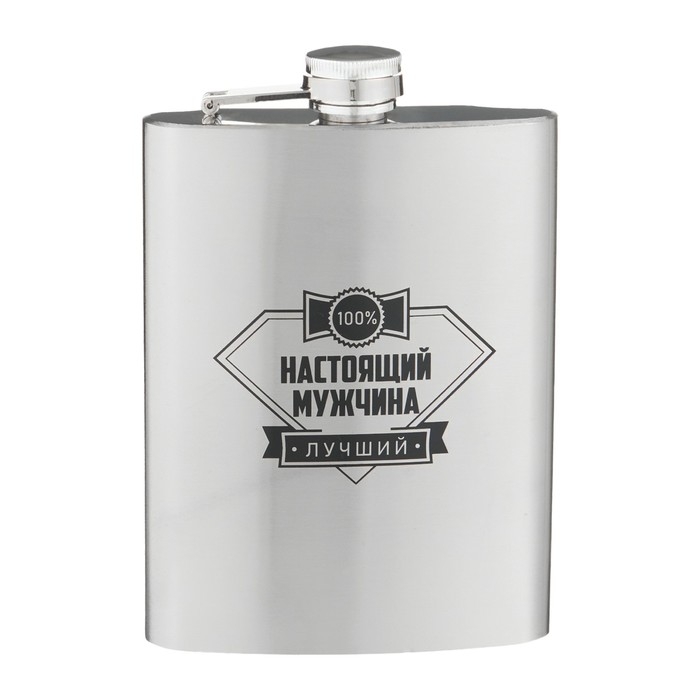 Фляжка для алкоголя "100% настоящий мужчина", нержавеющая сталь, 240 мл, 8 oz