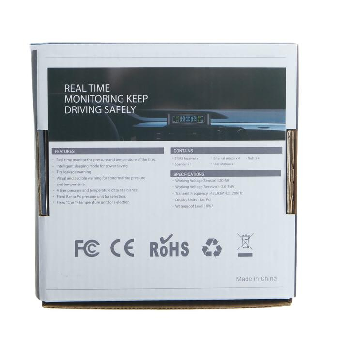 Система включает в себя комплект из 4 датчиков и приёмного модуля с цветным ЖК-дисплеем. Датчики измеряют давление и температуру воздуха в шине и отображают их значения на экране. Устанавливаются вместо штатного вентиля колеса автомобиля. Приёмный модуль принимает информацию о давлении в шинах и отображает эти значения на встроенном ЖК-индикаторе. Модуль питается от встроенного литий-полимерного аккумулятора, который подзаряжается от встроенной солнечной батареи или гнезда microUSB. При изменении давления в колесе система оповещает об этом водителя звуковыми сигналами и отображает информацию на экране. Пороговые значения давления и температуры настраиваются в меню дисплея.