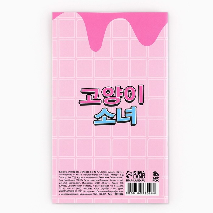 Книжка стикеров «Аниме девочка», 5 блоков, 30 л
