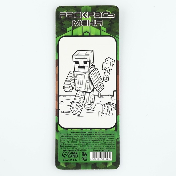 Стикеры с липким слоем «Майнкрафт», 3 шт, 30 л