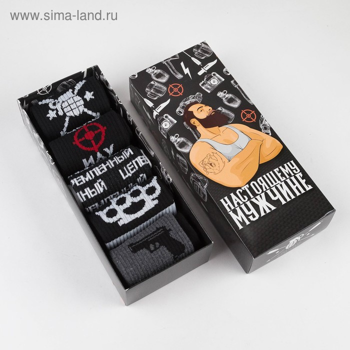 Набор мужских носков "Настоящему мужчине" 5 пар, р. 41-44 (27-29 см)