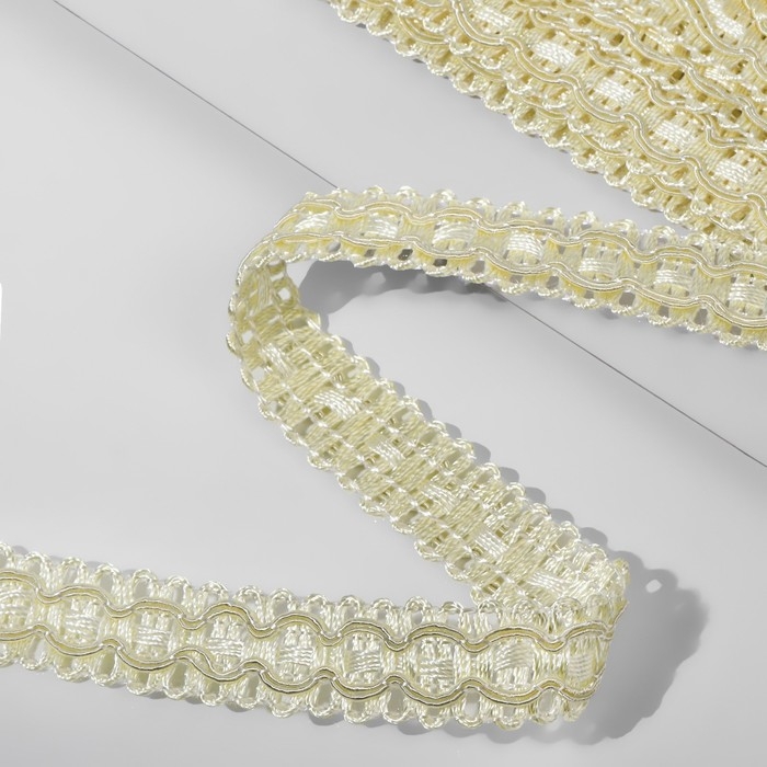Тесьма декоративная, 16 мм, 9,1 ± 0,5 м, цвет сливочный