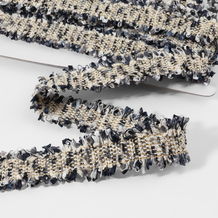 Тесьма декоративная «Твидовая», двусторонняя, 30 мм, 5 ± 0,5 м, цвет синий