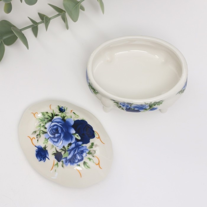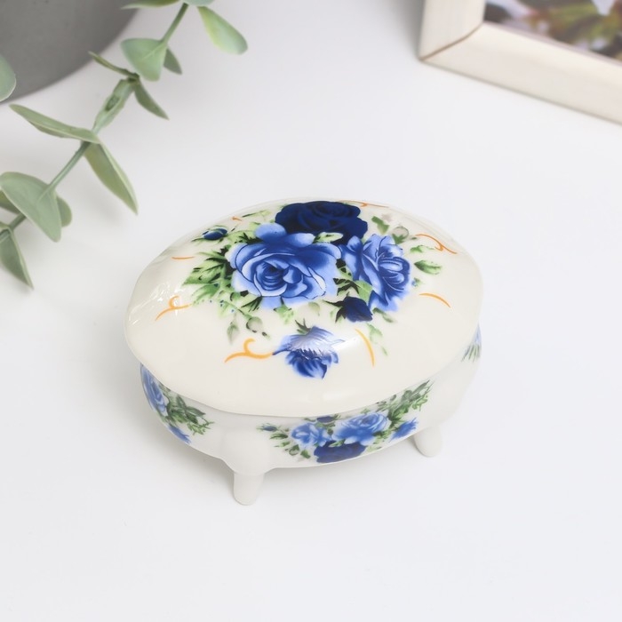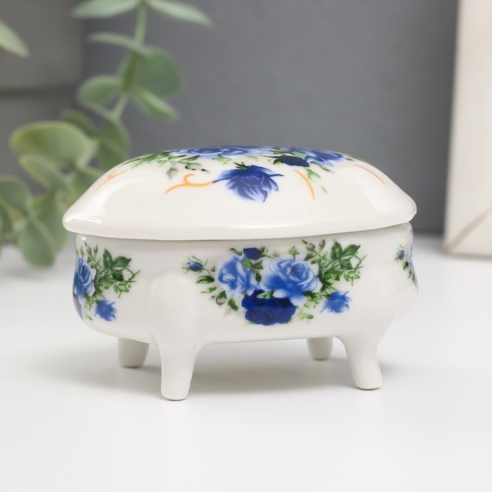 Шкатулка керамика на ножках "Синие розы" 6,1х7,7х4,8 см