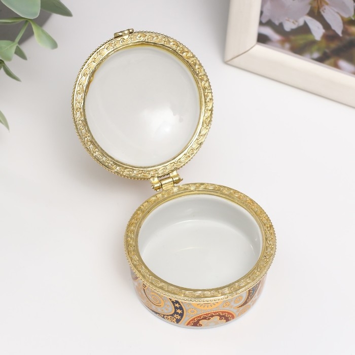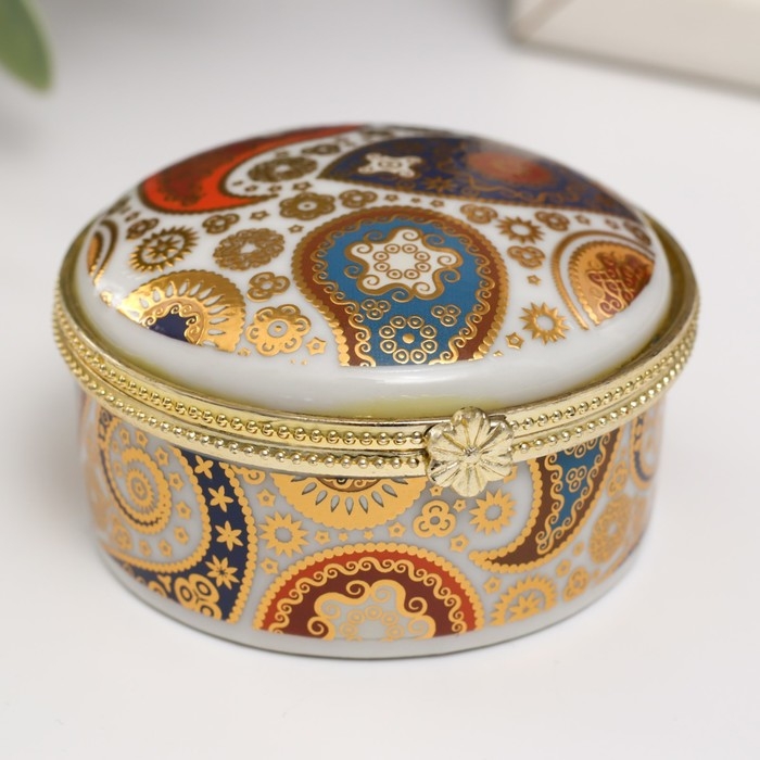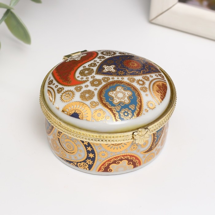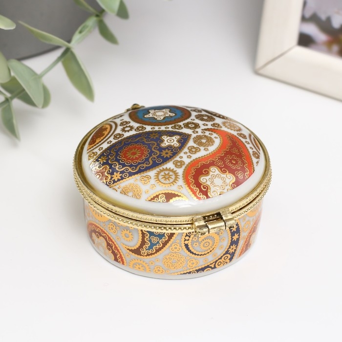 Шкатулка керамика круглая "Узор пейсли" 6,2х6,2х3,3 см