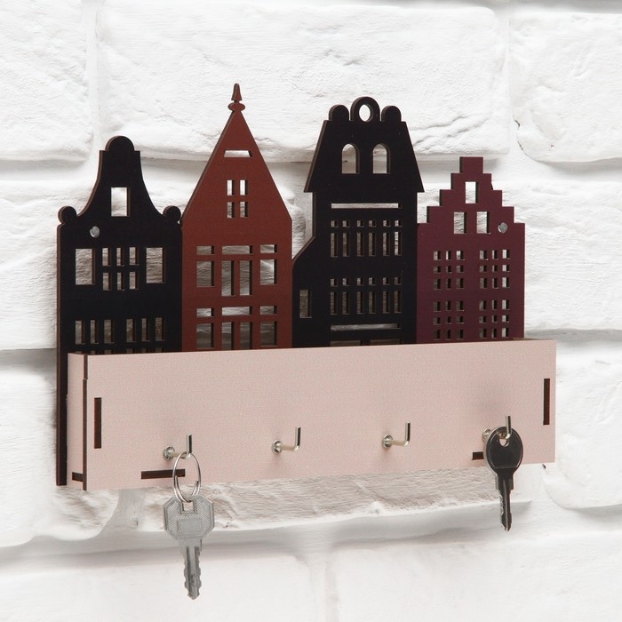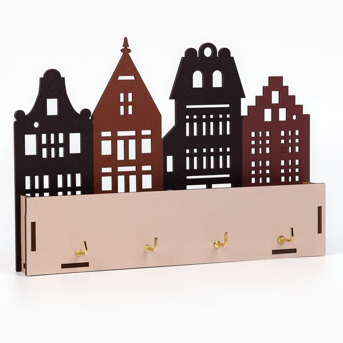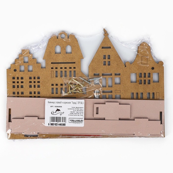 Ключница настенная с полкой с полкой и карманом, город, 23 х 16,1 см.