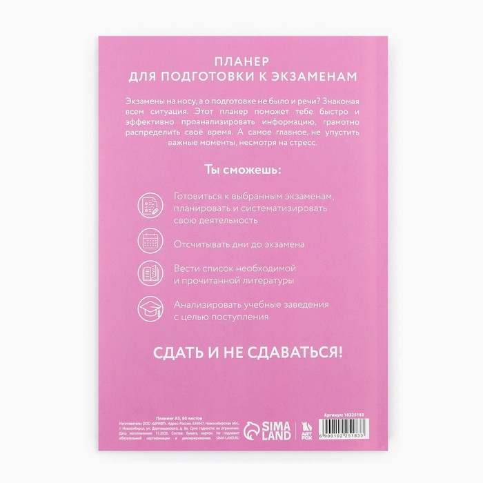 Планинг для подготовки к экзаменам, А5 60 л. Мягкая обложка «Розовый»