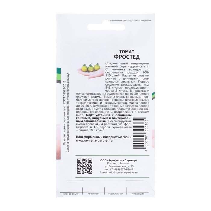 Рекомендуемая схема посадки – 4 растения/м², формировка в 1-2 стебля.