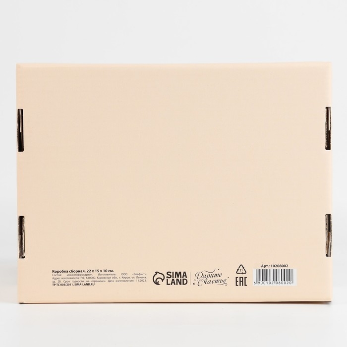 Коробка подарочная складная, упаковка, «Бежевая», 22 х 16.5 х 10 см