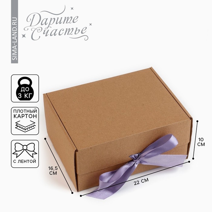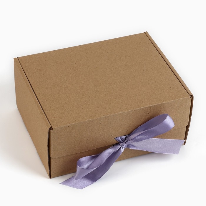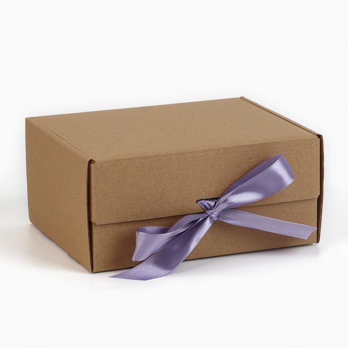 Коробка подарочная складная, упаковка, «Крафт, лавандовая лента», 22 х 16.5 х 10 см