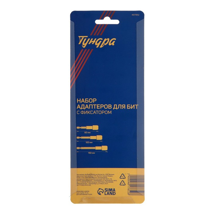Набор адаптеров для бит ТУНДРА, с фиксатором, 60-100-150 мм, 3 шт.