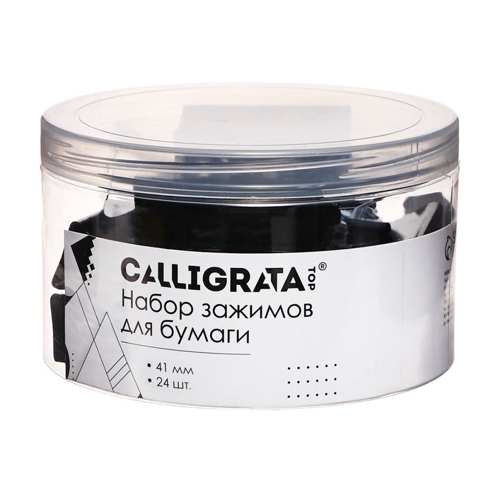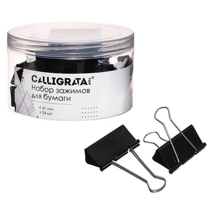 Набор зажимов для бумаг черных 41мм 24 штук, в пластиковой тубе
