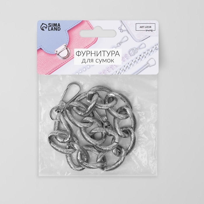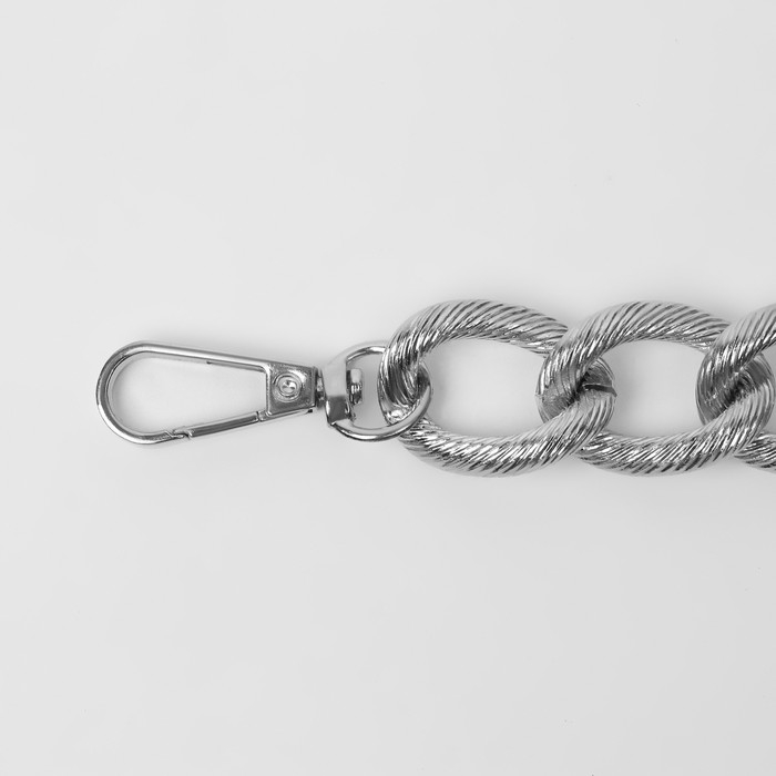 Цепочка для сумки, с карабинами, металлическая, ребристая, 27 × 20 мм, 30 см, цвет серебряный