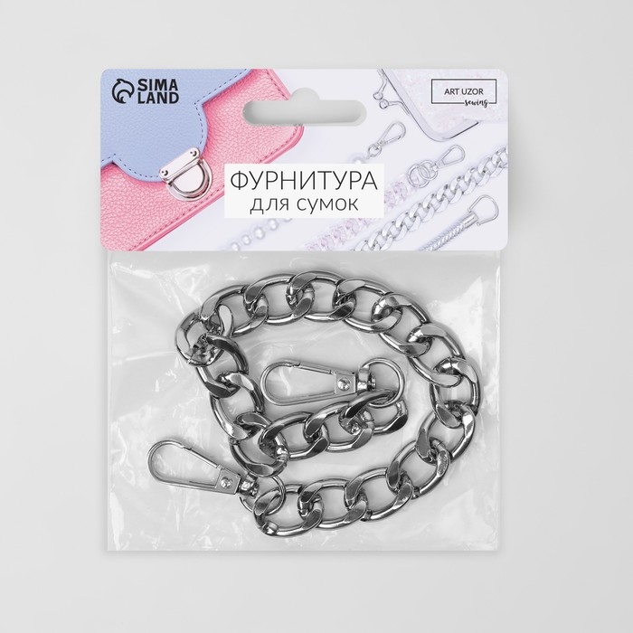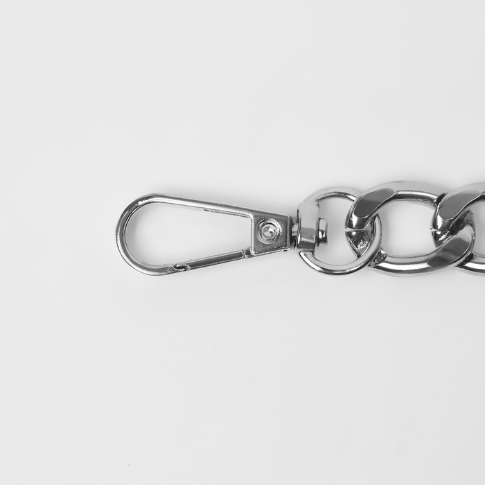 Цепочка для сумки, с карабинами, металлическая, плоская, 18 × 13 мм, 30 см, цвет серебряный