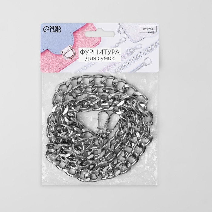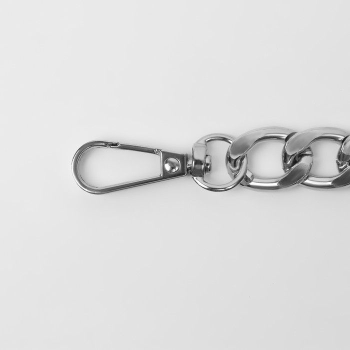 Цепочка для сумки, с карабинами, металлическая, плоская, 18 × 13 мм, 120 см, цвет серебряный