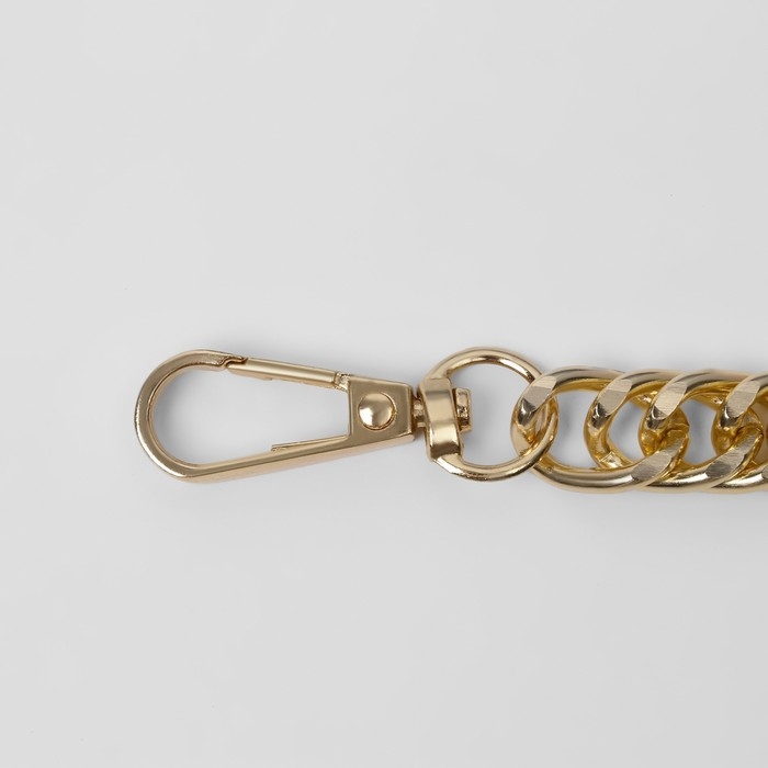 Цепочка для сумки, с карабинами, металлическая, плоская, плотное плетение, 15 × 10 мм, 30 см, цвет золотой