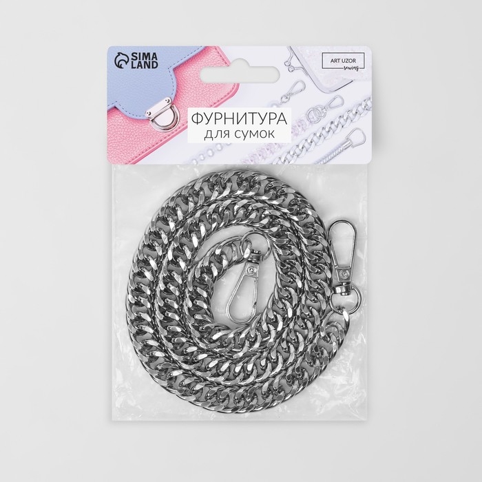 Цепочка для сумки, с карабинами, железная, 7 × 7 мм, 120 ± 2 см, цвет серебряный
